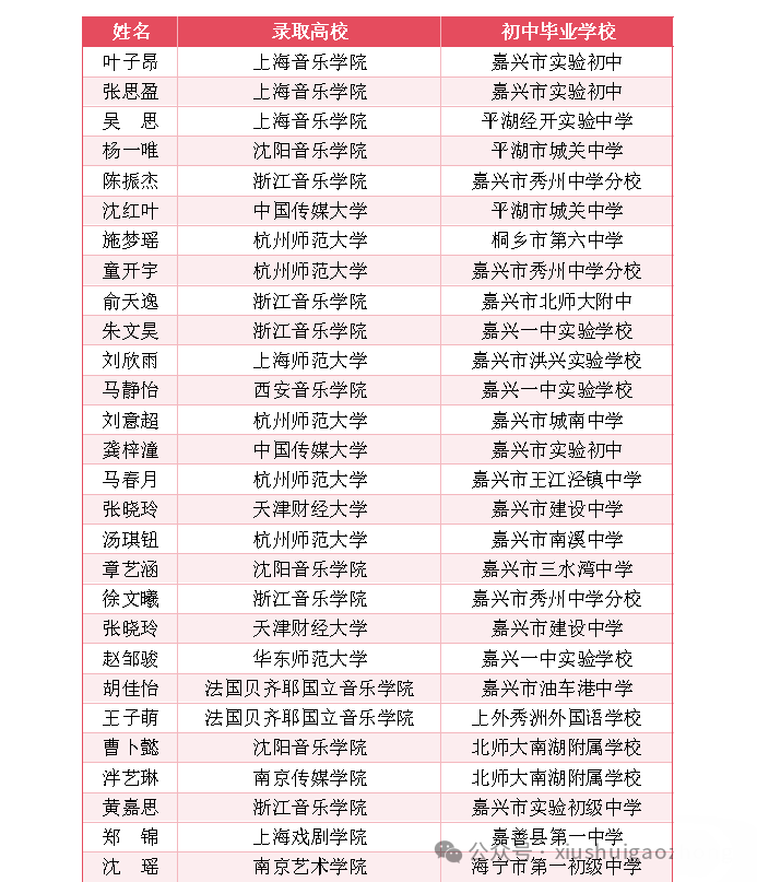 近年音樂(lè)專業(yè)考上知名院校的學(xué)生名單(部分)