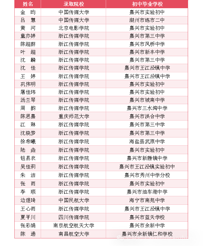 近年傳媒專業(yè)考上知名院校的學(xué)生名單(部分)