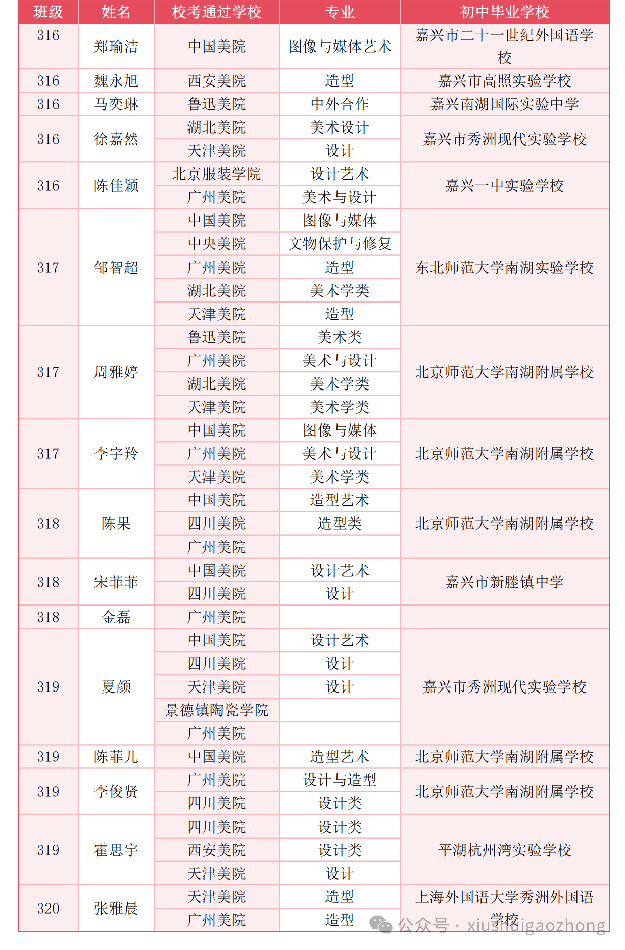 近年中國(guó)美術(shù)學(xué)院錄取的學(xué)生名單(部分)