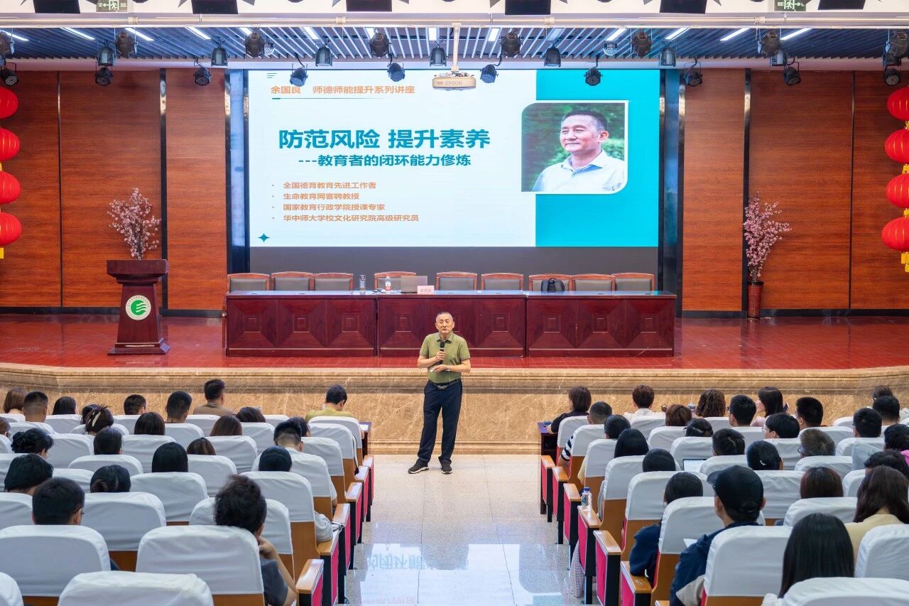 在教育高質量發(fā)展的時代背景下,教師能力建設不斷被賦予新的內涵。嘉興市秀水高級中學始終堅持以素養(yǎng)為導向,倡導教師發(fā)展從“單點突破”走向“系統(tǒng)構建”,尤其強調教育“閉環(huán)能力”的修煉與提升,以實現(xiàn)教學效益與育人質量的雙重保障目標。8月28日上午,全國知名德育專家余國良開展了一場別開生面的講座——《防范風險 提升素養(yǎng)——教育者的閉環(huán)能力修煉》,全校教師齊聚一堂,共同聆聽這場教育智慧的盛宴。