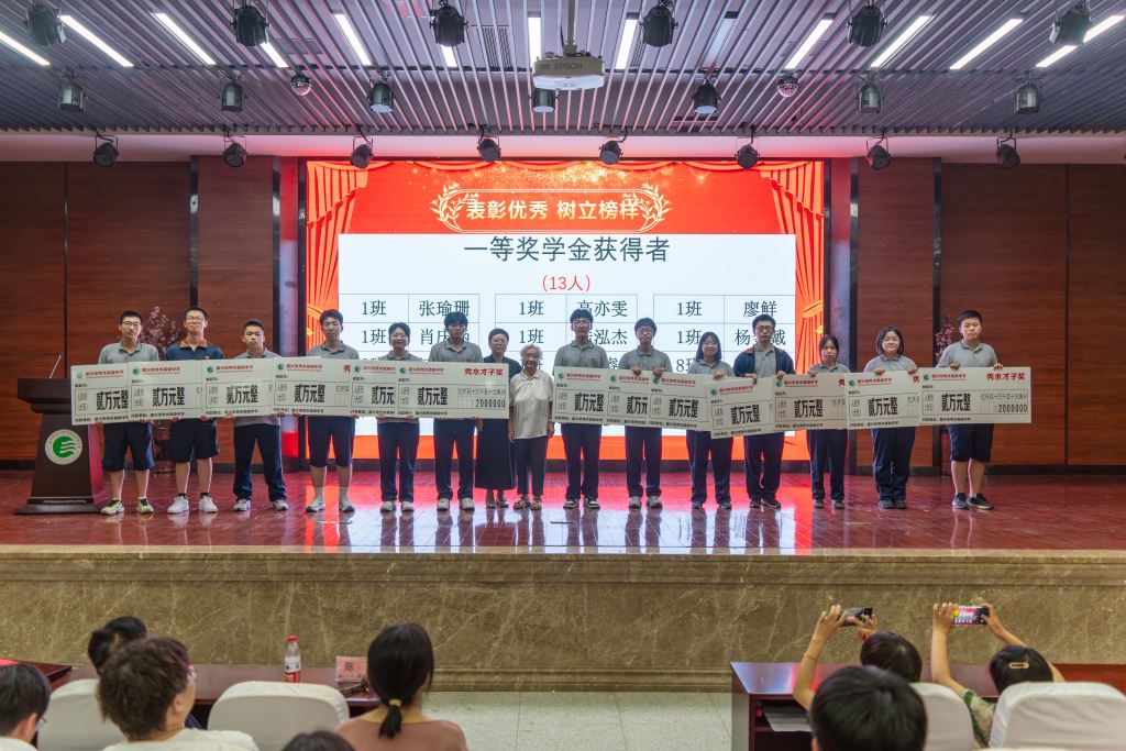 秀水學(xué)院終身名譽(yù)院長、秀水“善心”教育基金會理事長陳善攜秀水高中校級領(lǐng)導(dǎo)、一等獎學(xué)金獲得者家長齊聚一堂,共同見證這一榮耀時刻。