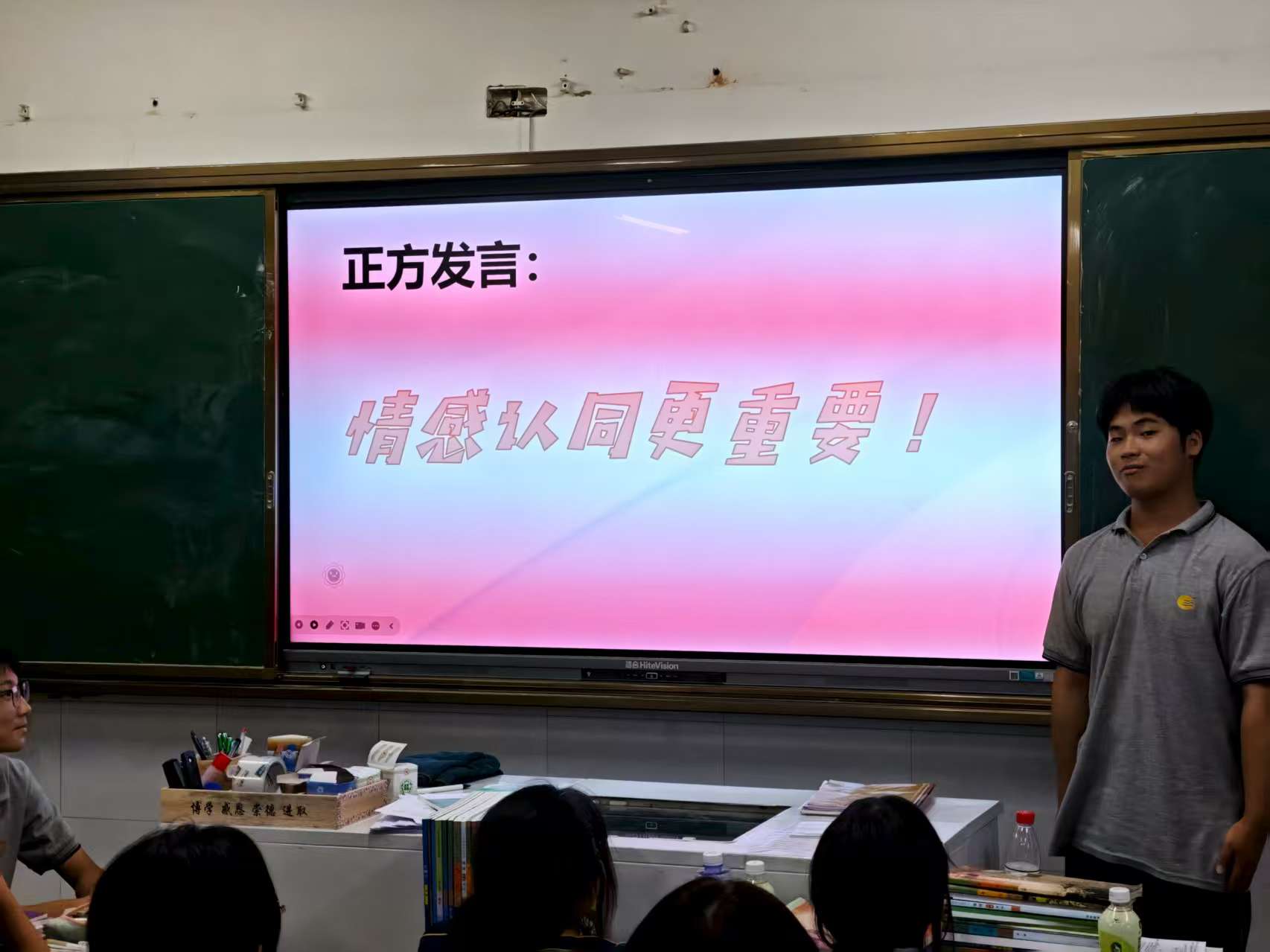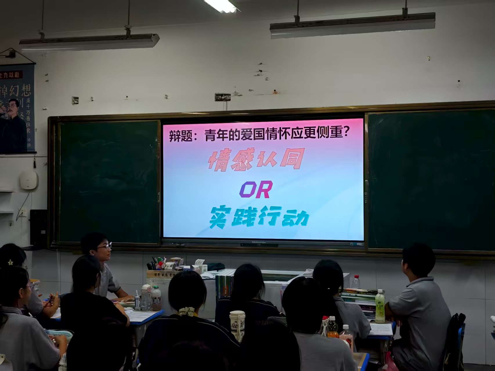 高一年級以“家國情懷・政治擔(dān)當(dāng)”為核心,精心策劃主題辯論賽。辯論賽圍繞“青年的愛國情懷應(yīng)更側(cè)重‘情感認(rèn)同’還是‘實踐行動’”這一核心辯題展開深度交鋒。政治組教師全程參與指導(dǎo)并擔(dān)任評委。