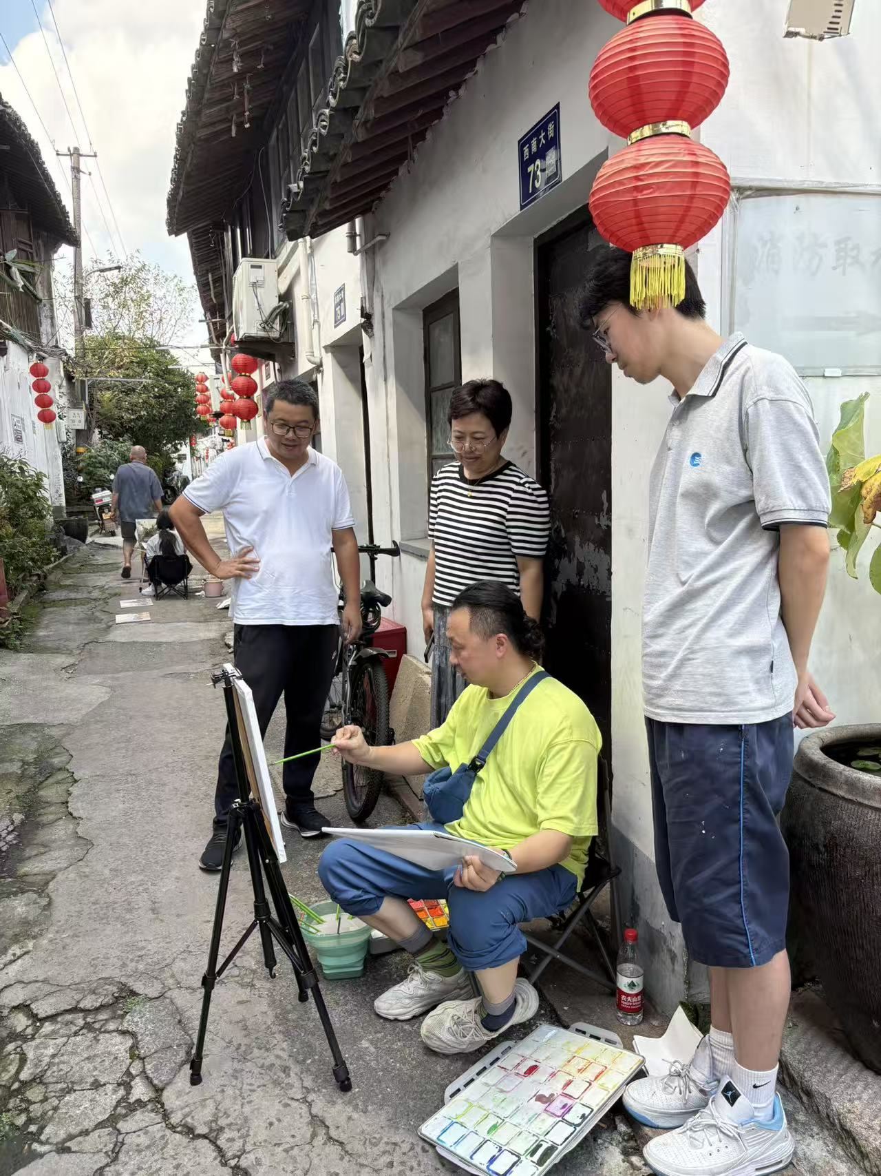 寫生期間,同學(xué)們執(zhí)筆取景,散落在古鎮(zhèn)的各個(gè)角落。有人穿行于幽深古巷,有人駐足于黛瓦粉墻,也有人凝神于橋影流水。他們以目光捕捉古鎮(zhèn)韻味,以畫筆勾勒人間煙火。片刻之間,新塍古鎮(zhèn)的靜美與生機(jī),便在畫紙上一一蘇醒,被賦予全新的藝術(shù)生命。
