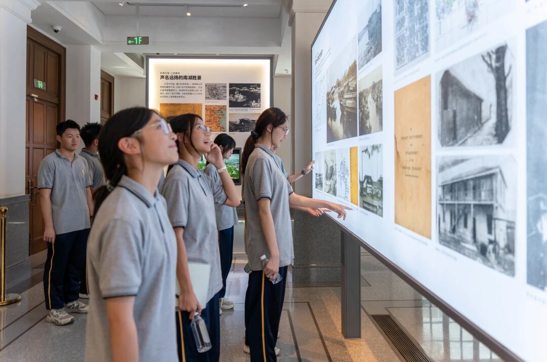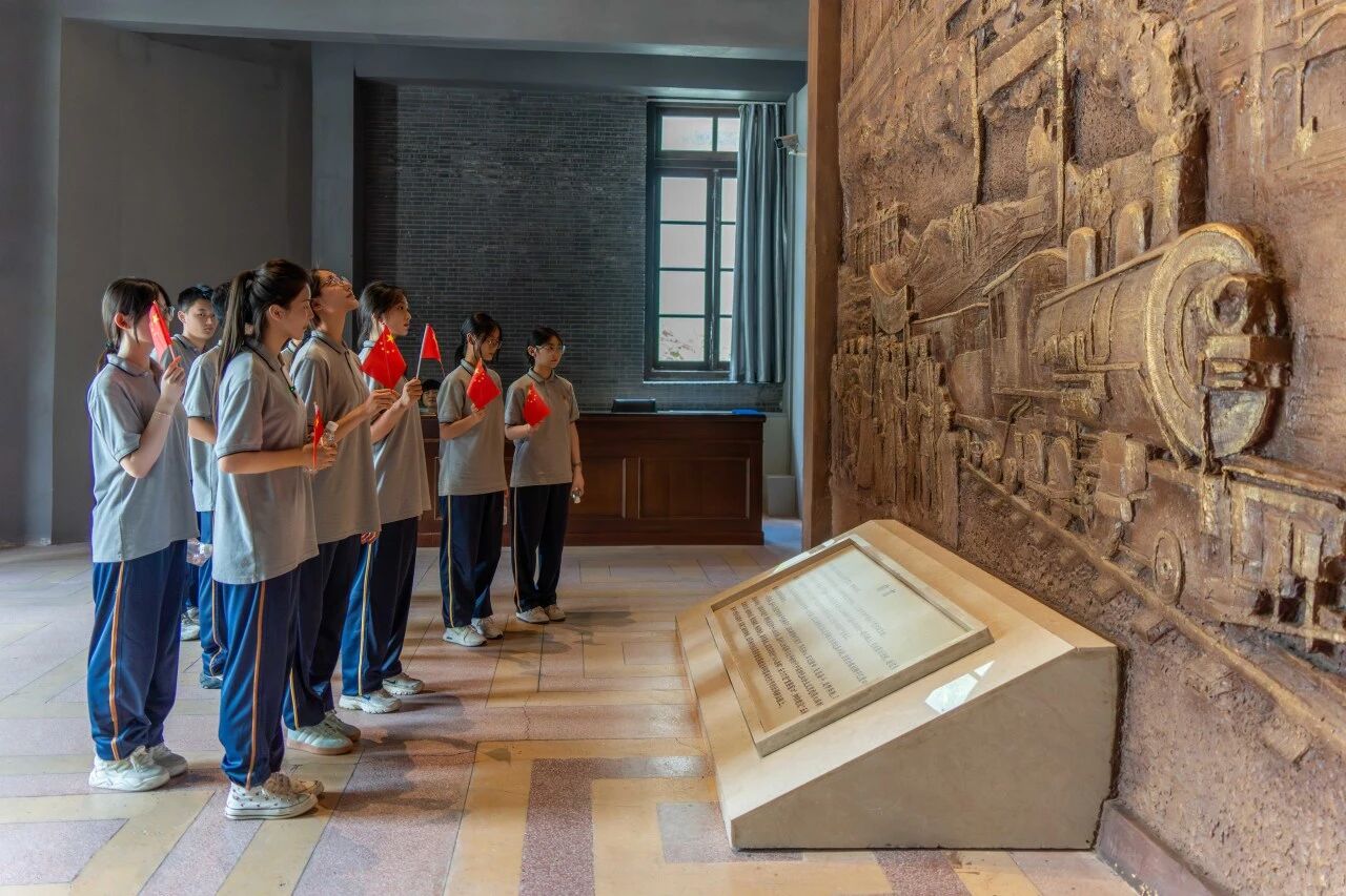 嘉興站(1921站房)——這座承載著中國共產(chǎn)黨誕生記憶的歷史地標,如今以煥然一新的面貌重現(xiàn)。紅磚墻鐫刻著歲月的痕跡,拱形門窗勾勒出復古的輪廓,復古站臺仿佛將時光帶回了那個風云激蕩的年代。漫步其間,革命先輩的堅定信念與初心使命撲面而來,同學們沉浸式重溫百年紅色記憶。