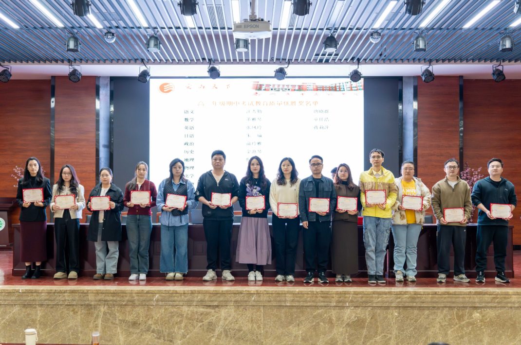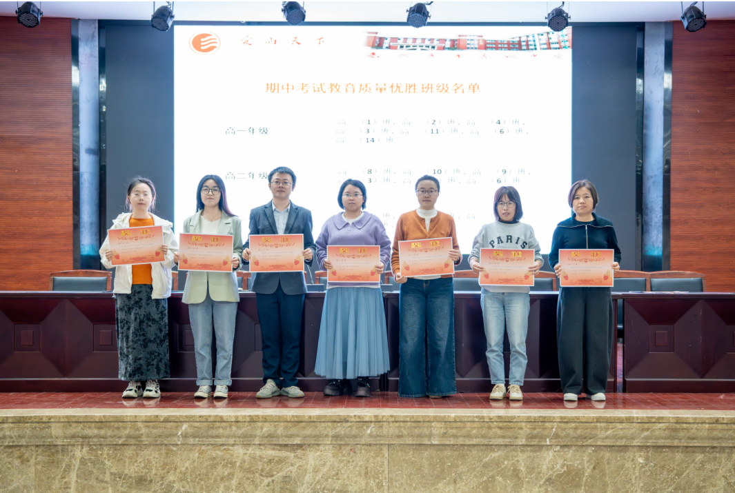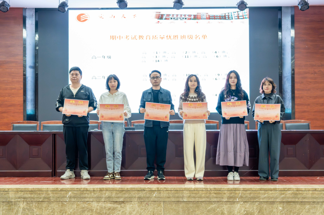分析結(jié)束后,大會(huì)進(jìn)入表彰環(huán)節(jié)。伴隨著激昂的音樂(lè),校領(lǐng)導(dǎo)為在期中考試中獲得教學(xué)質(zhì)量?jī)?yōu)勝獎(jiǎng)的教師和班級(jí)頒發(fā)榮譽(yù)證書。表彰不僅點(diǎn)燃了教師們的工作熱情,更營(yíng)造了“比學(xué)趕超、奮勇?tīng)?zhēng)先”的良好氛圍。