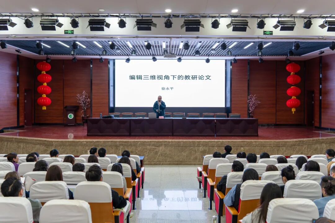 為進(jìn)一步提升教師教研論文的寫作與發(fā)表能力,學(xué)校特別邀請(qǐng)教育領(lǐng)域資深專家徐永平舉辦專題講座。徐永平老師曾任《語(yǔ)文教學(xué)通訊·高中刊》主編、數(shù)理報(bào)社常務(wù)副社長(zhǎng)兼常務(wù)副總編,擁有30余年教育期刊編輯經(jīng)驗(yàn),是全國(guó)中語(yǔ)會(huì)理事,在教研論文寫作與發(fā)表領(lǐng)域有著深厚造詣。