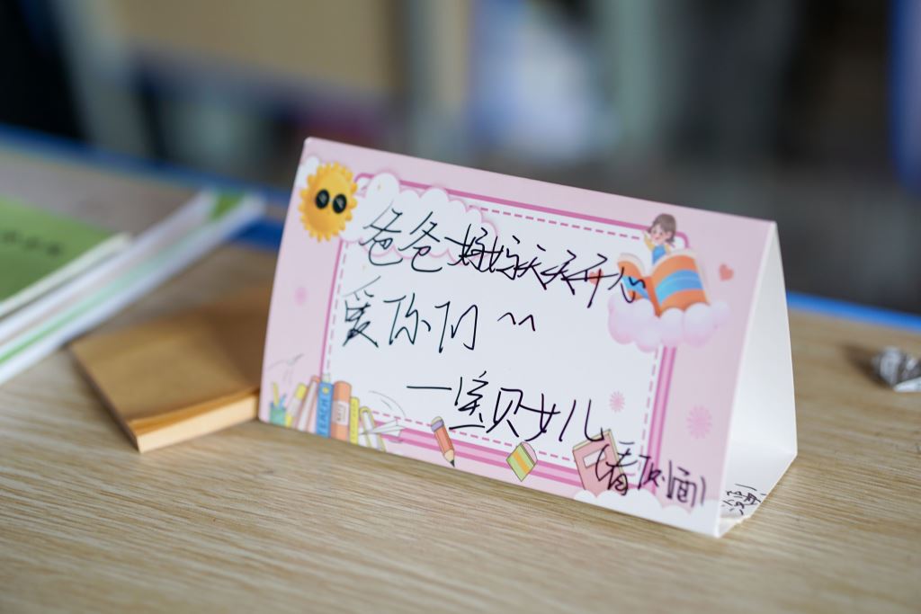 為迎接家長的到來,學校提前部署,各班師生共同參與環(huán)境布置,營造出濃厚育人氛圍。連廊展示的學生書法作品筆力遒勁、內(nèi)容經(jīng)典,體現(xiàn)語文素養(yǎng)與文化傳承的融合;各班黑板報以“感恩父母”“學習經(jīng)驗分享”為主題,展現(xiàn)學子真情實感。美術班學生親手繪制畫作贈予父母,課桌上擺放的姓名牌附有學生寫給家長的暖心寄語,細節(jié)之處彰顯學校“以愛育愛”的育人理念。