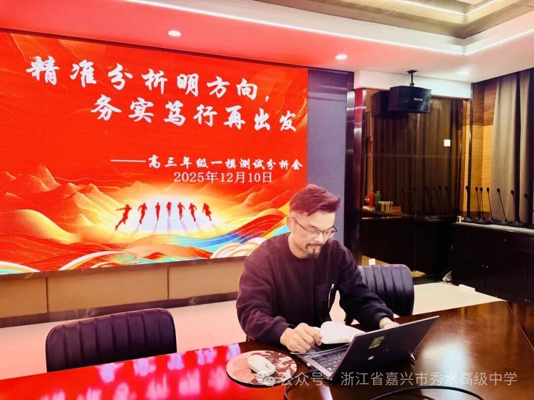 為深入分析高三年級一模測試情況,提升復習備考的針對性與有效性,12月10日下午,嘉興市秀水高級中學高三年級召開了一模成績分析會。會議由高三年級組長江東升主持,秀水學院黨委委員、紀委書記、秀水高級中學校長崔占鴻及其他校級領導出席了會議,高三全體教師參加。